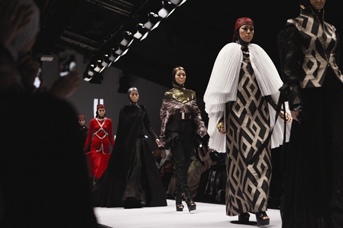 Anggun, tapi tak berkesan lemah, busana-busana dari Norma Hauri ini juga makin tegas berkat warna-warna solid yang menjadi andalannya. Hijau tua, merah, serta hitam dan putih mendominasi koleksinya kali ini. Soal teknik pembuatan, untuk koleksinya kali ini, Norma Moi memakai teknik emboss dan pencelupan shibori yang dilakukan bersama UTIC di Nagoya. Gaun finale-nya juga menampilkan mahakarya terbaik dari kolaborasi keduanya, terbuat dari bahan anti air berwarna hitam dan tampak spektakuler dengan jubahnya yang menjuntai dari bahu hingga.