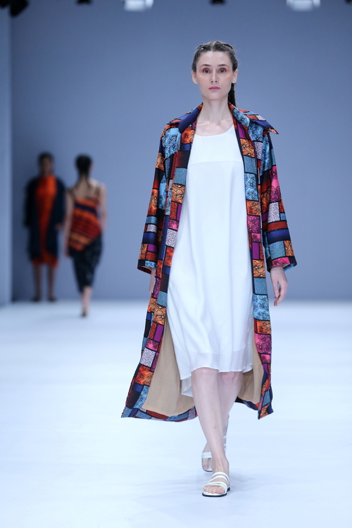 ready-to-wear yang berjudul “Réapparaître”. Koleksi ini menggunakan kain tradisional dari Sulawesi Utara, bantenan. Dengan sentuhan gaya