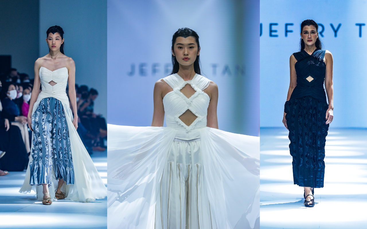 Koleksi dari perancang Jeffry Tan memiliki fokus pada teknik rempel atau pleating yang sangat detail. Dirancang menggunakan bahan-bahan yang memiliki struktur fluid dan lembut pada sentuhan, gaun-gaun dari koleksi ini nampak begitu megah dan majestik tanpa mengurangi kesan tangguh.