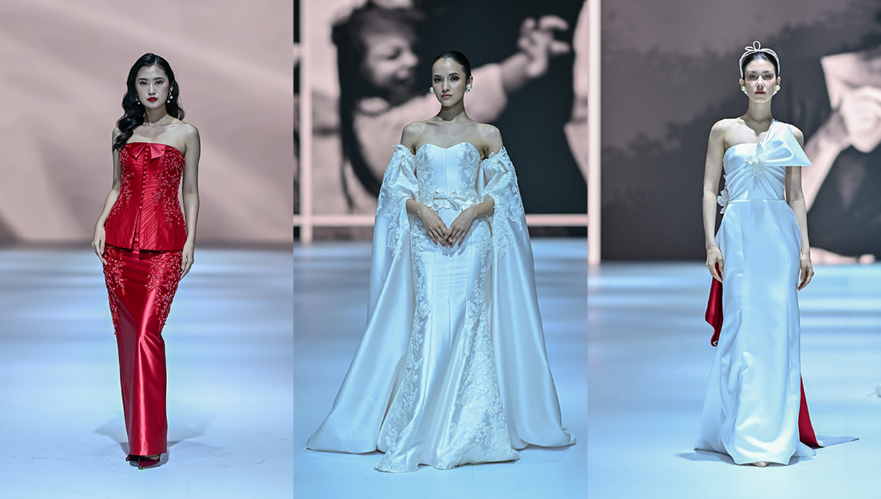 Gaun-gaun dengan warna merah ditampilkan sebagai pembuka, memberi suntikan energi yang mendebarkan dan keberanian bagi wanita yang melihatnya. Pilihan materi berupa satin, sifon, dan organdi tisu mendukung siluet yang minimalis, menciptakan aura elegan yang sederhana dan