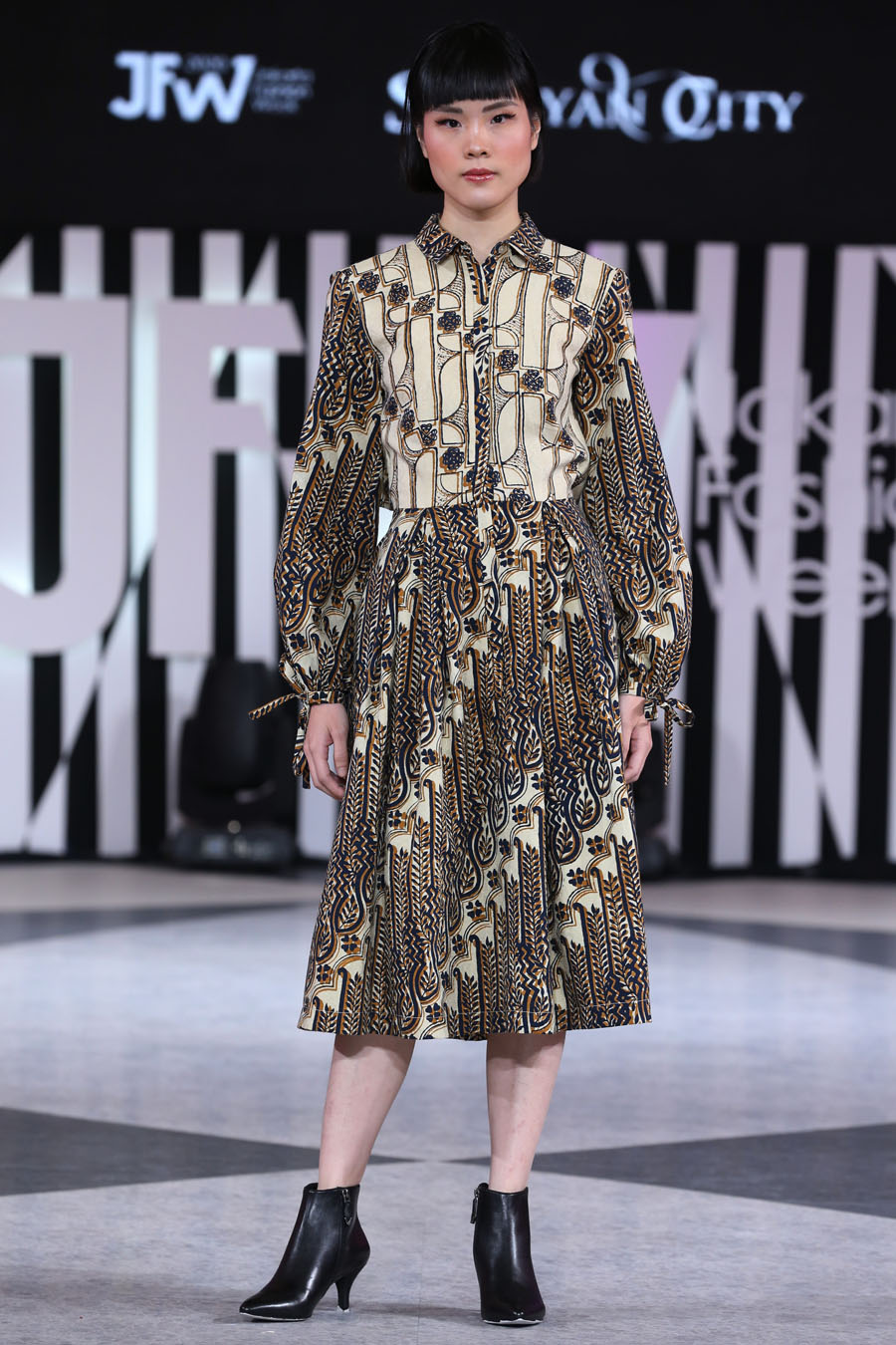 Dengan menggandeng Alleira Batik dan Rotelli, Senayan City menghadirkan koleksi bernuansa budaya Indonesia bergaya modern dalam pergelaran busana bertajuk “Javanese Culture 2.0”. Koleksinya ditampilkan di panggung Fashion Atrium Jakarta Fashion Week (JFW) 2020 di Senayan City, Jakarta, Selasa (22/10).