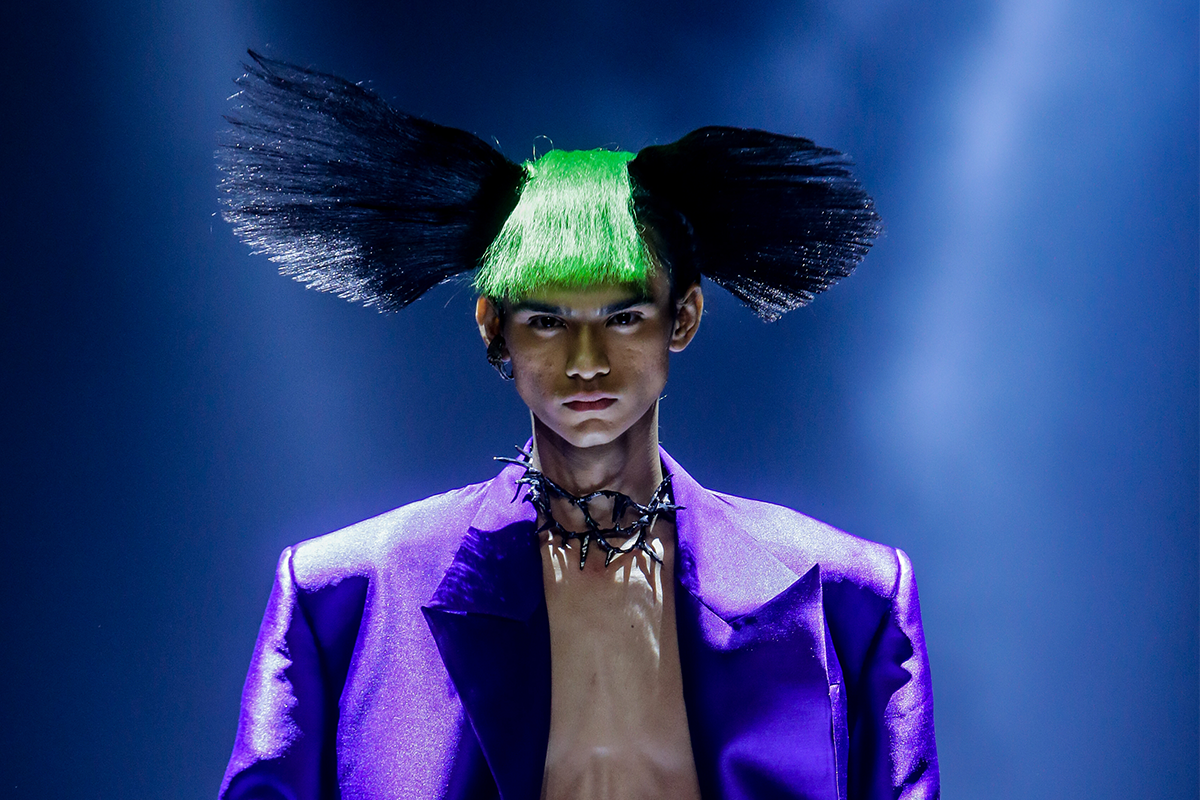 Menggunakan fabrication yang tepat juga merupakan unsur penting dari koleksi ini. Bereksperimen dengan sculpted denim, vegan leather, dan aneka bahan satin dan sutera yang memiliki kilap mewah, ia berusaha menangkap sisi romantisisme dalam desain busana yang kental pengaruh punk dan glam rock-nya. Kreasi permainan polanya pun sangat menarik, dengan juntaian kain yang melingkar-lingkar dari potongan tangan dan hem serta structured ruffles di potongan-potongan samping menambah unsur hyper-feminine. Detail ini menjadi pelengkap antara jukstaposisi apik maskulin dan feminin.