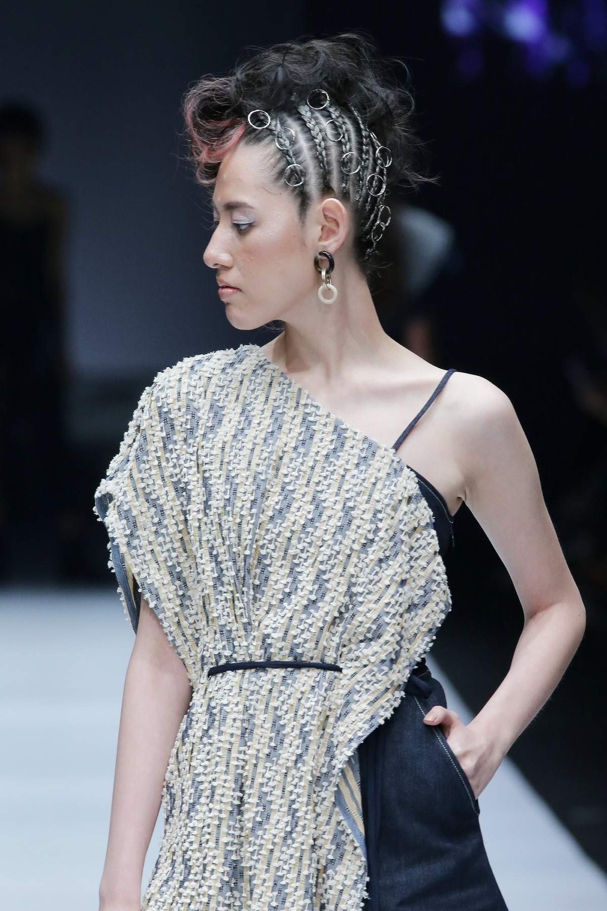 , flowy, dan damai terlihat dari koleksinya kali ini. Penggabungan siluet yang struktural, potongan asimetris, dan perpaduan bahan yang berbeda, membawa keindahan alam Indonesia ini untuk bisa dipakai di kota.