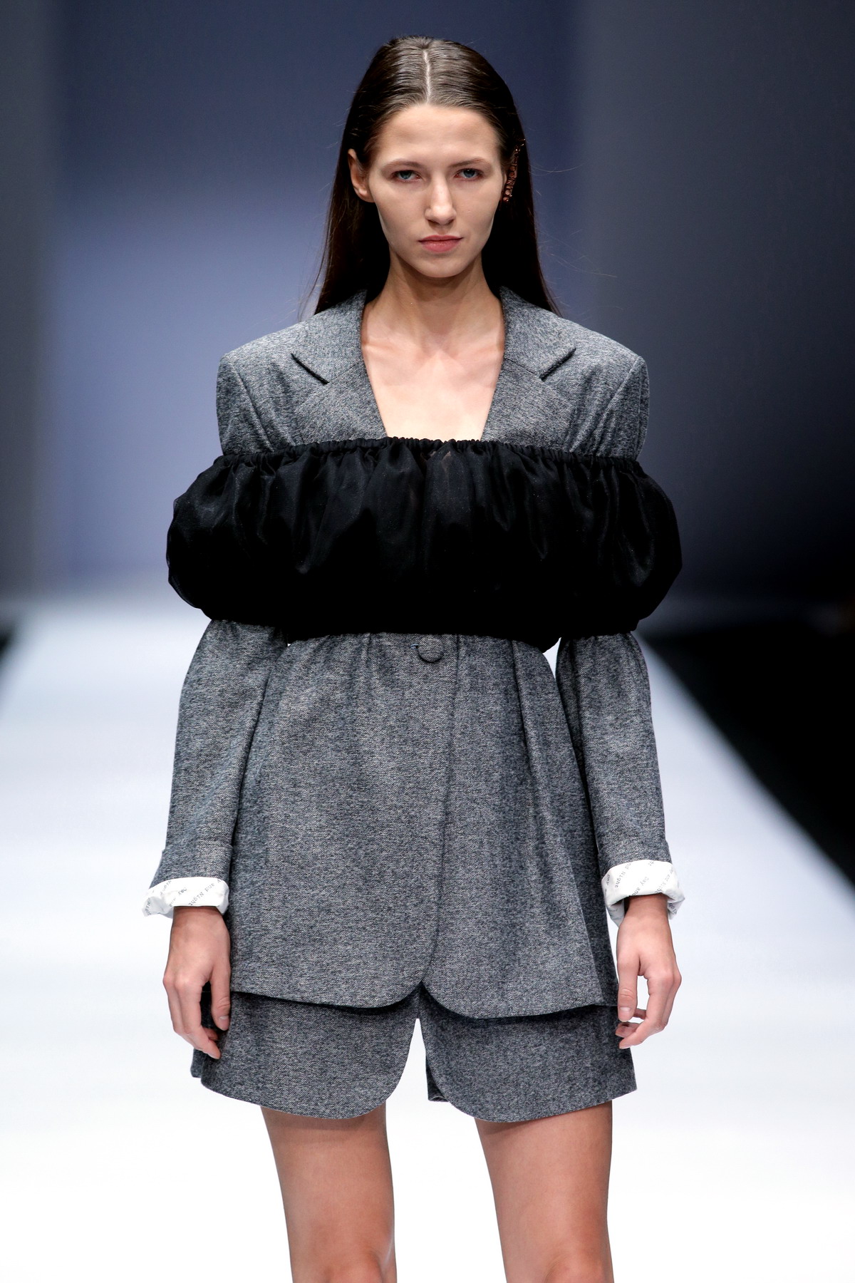 After that, Day and Night closed the show with "I See You See Me" collection. This collection was described as two sides of something, like grown up who still has a childish side hidden. Her S/S 19 collection used a monochromatic palette and was inspired by child’s fashion during 5th-15th century. The theme was portrayed beautifully with long coats, crocheted fabrics, and playful off-shoulder tops. "Peek-a-Boo" and puffed volume are key details in this collection to interpret its title, “I See You See Me”.